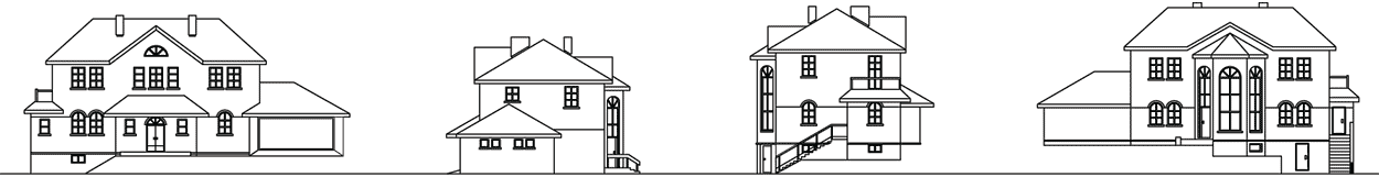 Представительный загородный особняк, в котором кроме двух жилых этажей есть подвальные помещения и чердак. Площадь и высота чердака, не показанного на планах, вполне позволяют переоборудовать его в жилую мансарду. Для этого необходимо провести ряд мероприятий по его утеплению и освещению. Первый этаж представляет собой зону дневного пребывания семьи. Из большой прихожей можно попасть практически во все помещения первого этажа: кухню, столовую, гостиную и гараж. По открытой лестнице, расположенной здесь же, можно подняться на второй этаж, где находятся четыре большие спальни. Небольшие дугообразные галереи, с которых открывается вид на второй свет гостиной, являются украшением интерьерного пространства второго этажа.